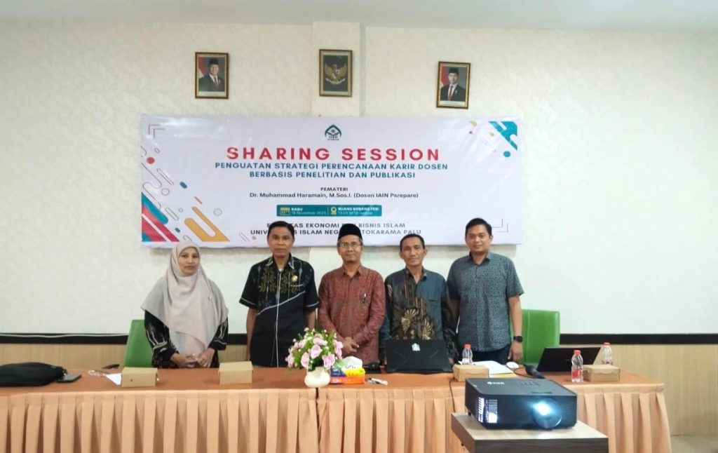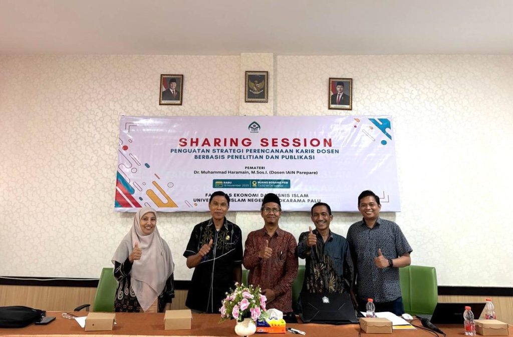 Palu, 19/11 (UIN Datokarama) – Fakultas Ekonomi dan Bisnis Islam (FEBI) UIN Datokarama Palu menyelenggarakan kegiatan Sharing Session: Penguatan Strategi Pengembangan Karir Dosen Berbasis Penelitian dan Publikasi Tahun 2025 dengan mengusung tema “Menata Karir Akademik Unggul melalui Penelitian Terarah dan Publikasi dan Publikasi Bermutu”, Rabu (19/11/2025). Kegiatan ini berlangsung di Aula Lantai 2 Gedung FEBI UIN Datokarama Palu.